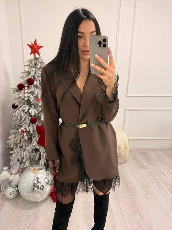 🔥НОВИНКА🔥 СУКНЯ-ПИДЖАК Модель:753 r4962 Тканина: костюмка+мереживо Размер: one size (42/46) Кольори: шоколад Цена: 1200грн ✨тканевый пояс идет в комплекте