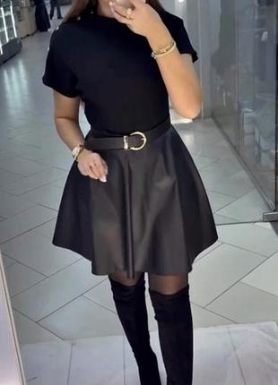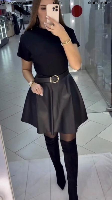 ▪️Сукня ▪️Мод. 1008 ▪️Розмір - 42-44, 46-48, 50-52 ▪️Тканина - Італійський трикотаж +еко-шкіра ▪️Кольори - чорний ▪️ Кнопки робочі ▪️Ціна: 800 грн ▪️ Ремінь: 100 грн ✨ Елегантна сукня, що підкреслює жіночність ✨ Декоративні робочі кнопки на плечах надають образу родзинки та роблять модель особливо ефектною. Модель виконана з італійського трикотажу у поєднанні з еко-шкірою, завдяки чому сукня ідеально тримає форму та виглядає дорого. Акцентна спідниця з еко-шкіри додає образу стилю й характеру, а пояс у комплекті підкреслює талію, створюючи витончений силует.караку