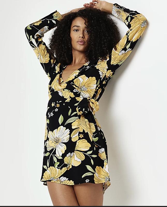 Плаття River Island 🌼 квітковий принт Стильне жіночне плаття міні від River Island (Made in India). Чорна основа з яскравим квітковим принтом 🌿 (жовтий, білий, зелений). Легка та приємна до тіла тканина — ідеальний варіант на весну/осінь або літо. 🔹 Розмір: M 🔹 Склад: 100% віскоза 🔹 Модель: на запах 🔹 Комірець як у сорочки 🔹 Довгий рукав, на манжеті 3 ґудзики 🔹 Ззаду на талії — резинка 🔹 Спідниця суцільна (не розходиться) 🔹 Довжина — міні 📏 Заміри: • Плечі — 42 см • Довжина — 87 см • Рукав — 82 см (від горловини) • Талія — 36–45 см (резинка тягнеться) • Стегна напів обхват — 60 см • Груди напів обхват — 50 см (вільно за рахунок запаху та вирізу) Плаття красиво сідає по фігурі, підкреслює талію та декольте 💛 📦 Можлива відправка. Дивіться також інші мої оголошення 🌷
