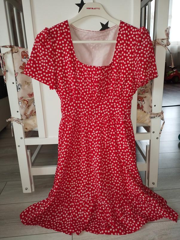 Легкое летнее платье с подкладкой. Мелкий цветочный принт. Синтетика