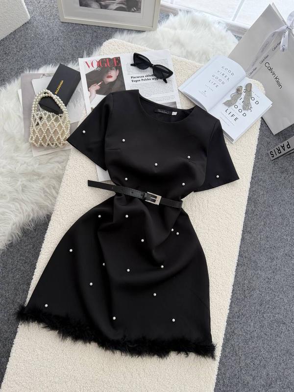 Сукня, фото реал ⠀ ▫️Розміри: 42-44, 46-48, 50-52 ▫️Кольори: чорний ▫️Тканина: креп костюмка + натуральне пір’я ⠀ На сукні прибиті перлинки. Пояс +80 грн ⠀ Модель 1002