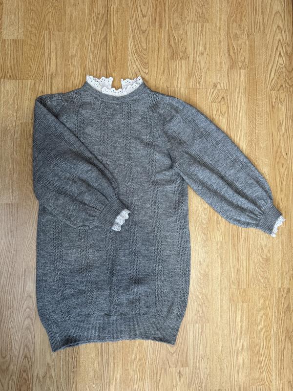Тепле сіре плаття з трендовими рукавами та коміром. Розмір С)