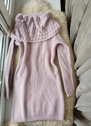 Женское теплое платье нежно-розового цвета Размер С Длина 71,5 см Ог 38 см тянется до 48 см Полуобхват Бедра 37 мы тянется до 51 см Рукав 65,5 см 🩷Нюанс маленькая дирочка с одной стороны виден на фото, но это можно справить под петлю,стан очень добрый