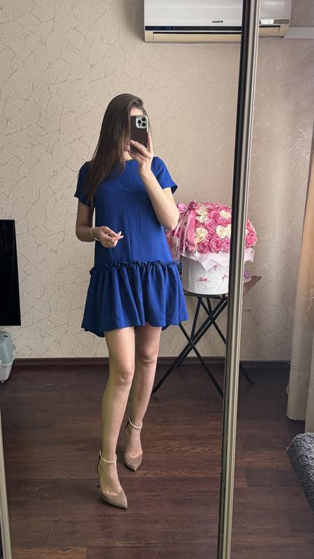 Сукня оверсайс, вільного крою,бак подовжена ззаду. Замочок по спинці *можна перешити по талії. Замір напівобхват: Плечі 34 Груди 43 Довжина спереду 77 Довжина ззаду 80