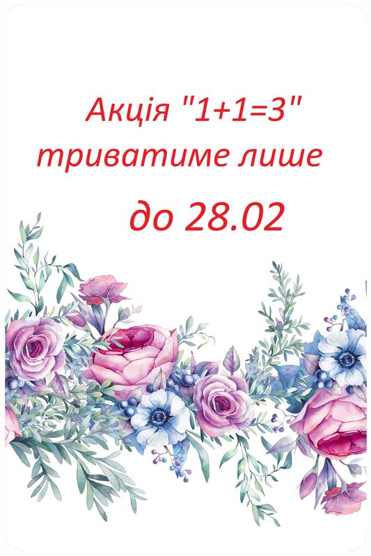 Девочки! ❤️Акция 1+1=3❤️ 2+2=6 и т.д. будет длиться всего до 28.02.! ***** УМОВИ❗ 1. Акция "1+1 = 3" означает, что Вы платите за 2 вещи и 3 (третью) получаете в подарок. Вы платите за 4 вещи и еще 2 получаете в подарок и т.д. То есть каждая 3 вещь идет бесплатно. *В подарок идут вещи с наименьшей стоимостью. 2. Акция идет "Только при оплате на карточку", на безопасную оплату акция не действует!!!! 3. В акции участвуют почти все вещи, кроме категорий "Верхней одежды" и "Кофты". Вдалих покупок😊 *******************