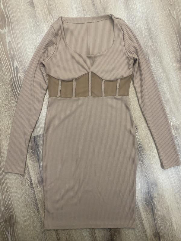 Сукня нова, ні разу не вдягнена. Тканина рубчик щільна не світить, під грудьми Імітація корсету з сітки, бюст тканина подвійна. Заміри: довжина 88, рукав 64, пог 40 тягнеться 48