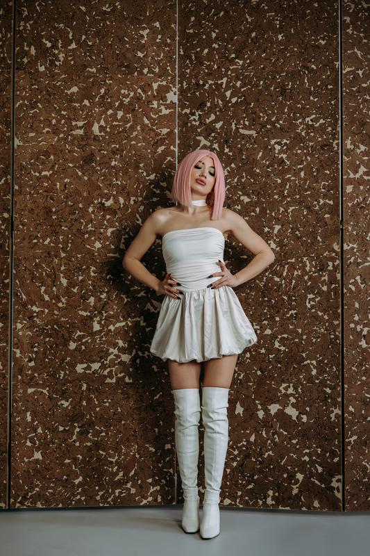 Супер трендова міні сукня в бежевому кольорі. На завʼязках Розмір с