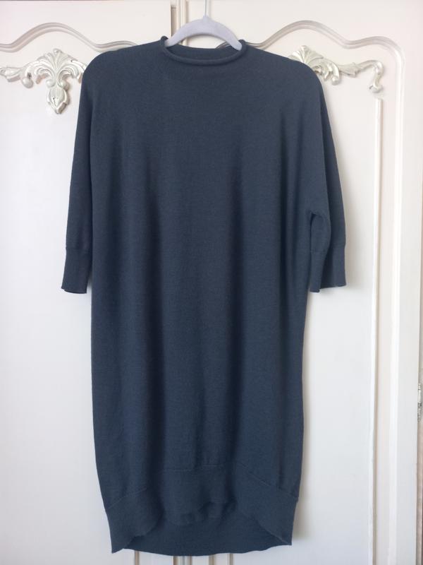 Стильное платье- оверсайз, размер М, темно серого цвета, 100% шерсть, Пог 60см, плечи 43см, рукав от шеи 51см, длина сзади 95см, спереди 84см, мягкая, дующая классная, новая, без бумажной бирки.