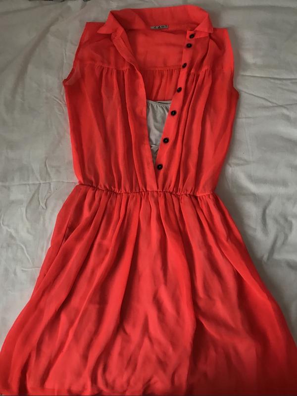 Біла підкладка має трішки жовтизну, дліна 90см, ширина в плечах 40см, в грудях 45см, талія 35см ( але це резинка тому розтягується), колір яскраво помаранчевий для літа саме те!