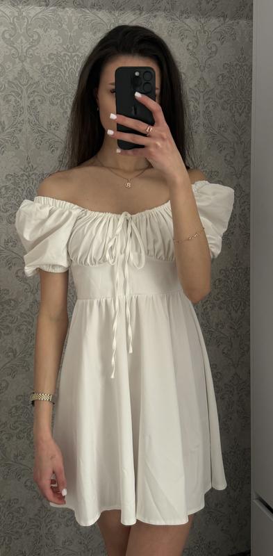 Біла сукня з відкритим плечима. Стан новий, без дефектів. Гарно підкреслює талію, легка та жіночна. Розмір: S (підійде на ріст до ~168 см)