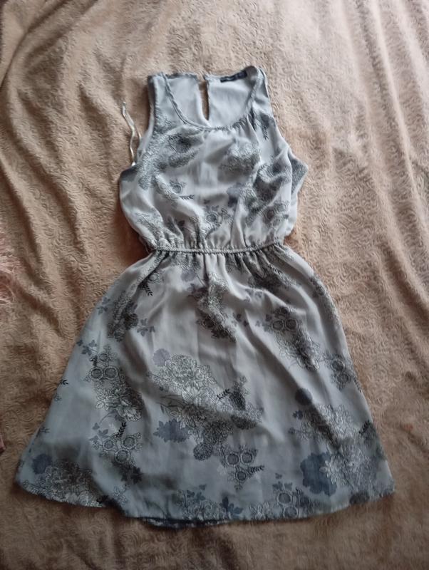 Красивое платье, сарафан. серого цвета. рисунок розы. на талии резинка. хорошо тянется. защелка на пуговице. на груди сборка.