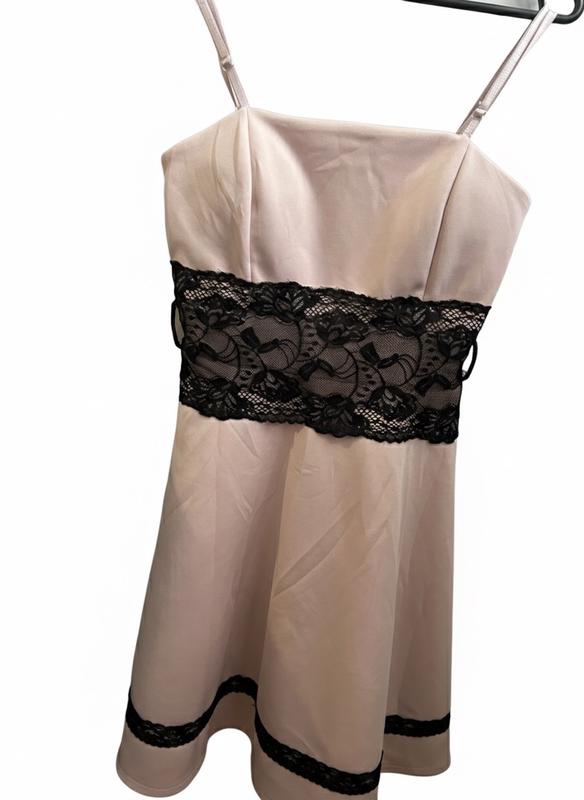 Пудрова сукня з чорним мереживним поясом і тонкими бретелями. Бренд: Amisu (New Yorker) Ціна: 150 грн