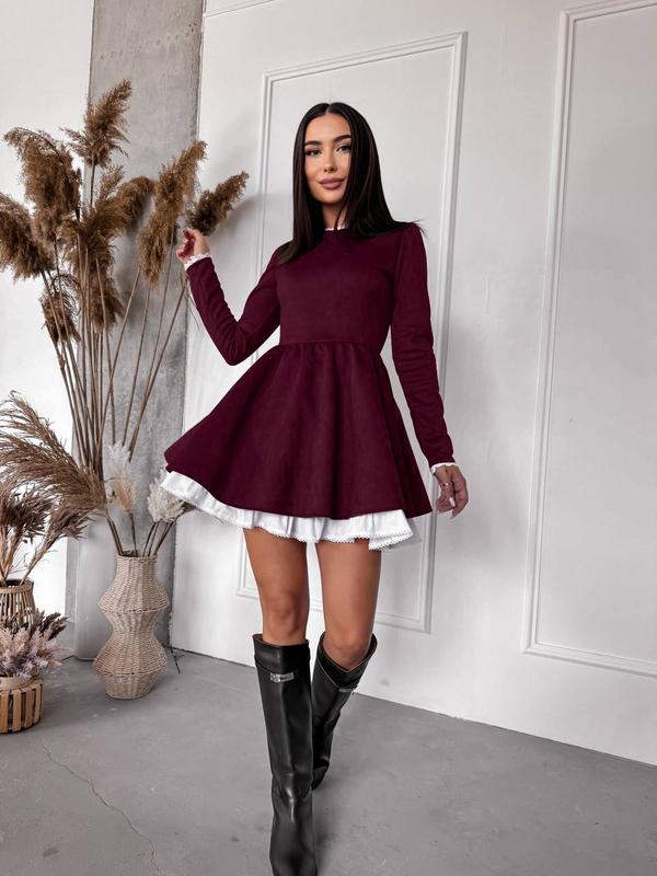 В наличии ❗️ стильное и романтичное, платье верх силувидной, обработанная французским сетевым сетком, застегивается молнией на спинке, юбка убранная, сорнцеклеш, + съемная белая юбка с сетевым🖤 • 999 грн Арт. 10495 Ткань: замш на дайвинге (тянется) с приданием белого коттона (хлопка), Ткань: Турция🖤 Цвет: черный, бордо, изумруд Размер: с-м(42-44) Об.. гр. 84-90 см. Об.талии 62-68 см. Длина 83 см. Размер: м-л(44-46) Об. гр. до 90-96 см. Об.талию до 68-72 см. Длина 84 см.