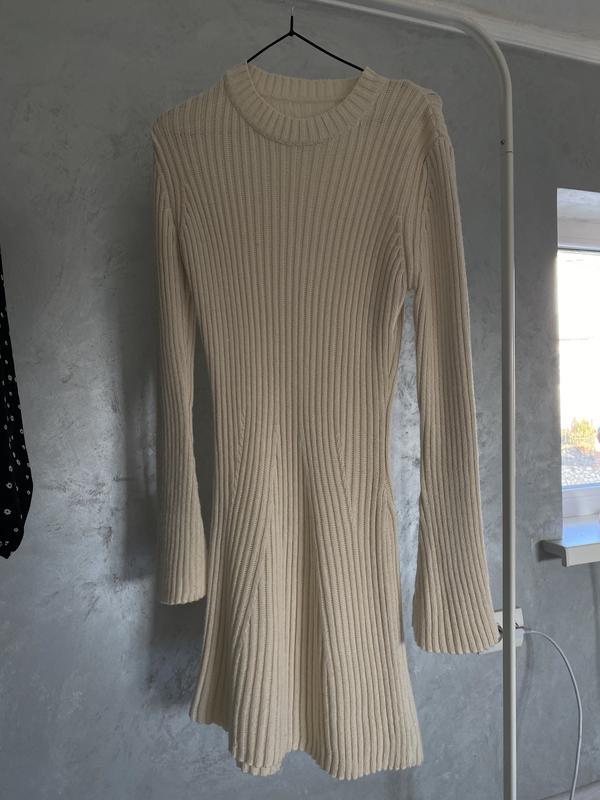 Плаття Біле, вʼязане, тепле, довгий рукав Макс груди 1.30 см розмір універсальний