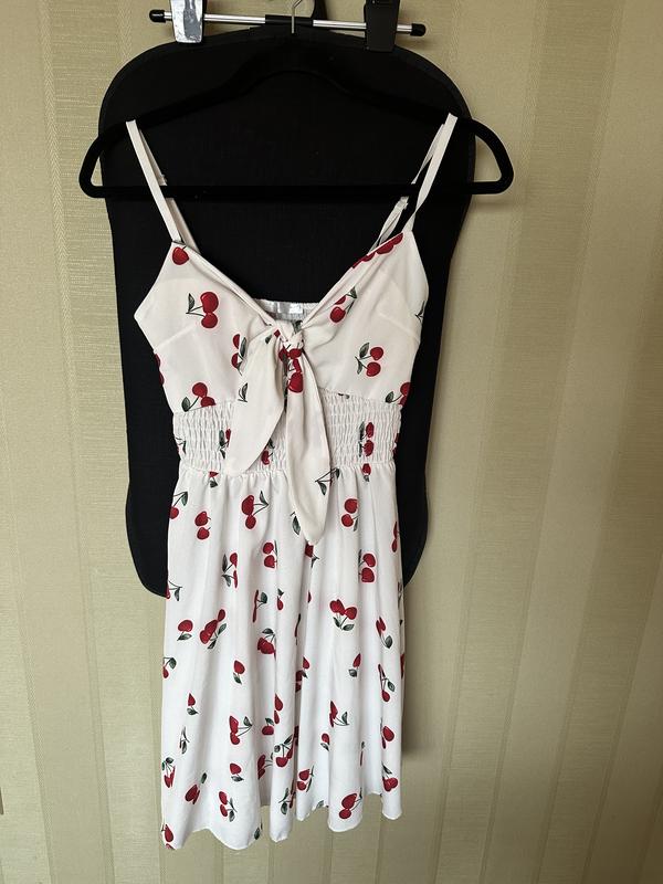 Плаття літнє, принт вишеньки Розмір M-L Додатковий ремінець щоб зробити виріз V На бретельках По талії резинка Стан ідеальний