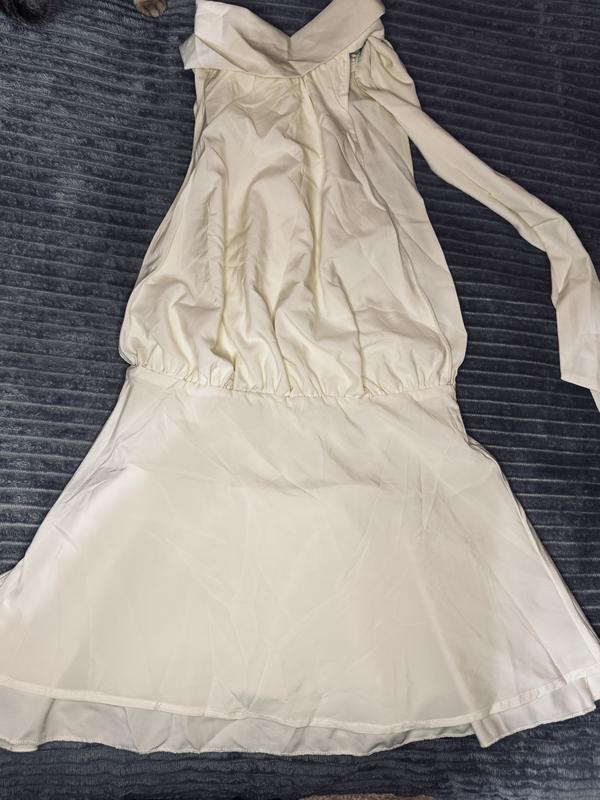 Це коротка коктейльна сукня ніжного кремового відтінку, яка виглядає дуже витончено та водночас сучасно