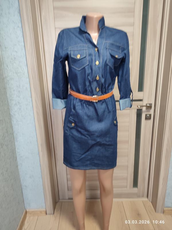 нова джинсова сукня рукав 3/4 или длинный есть два кармана пояс на резинке + ремень замеры: ОГ-100см ОТ-70-90(на резинке) ОБ-96 см Длина-90 см.