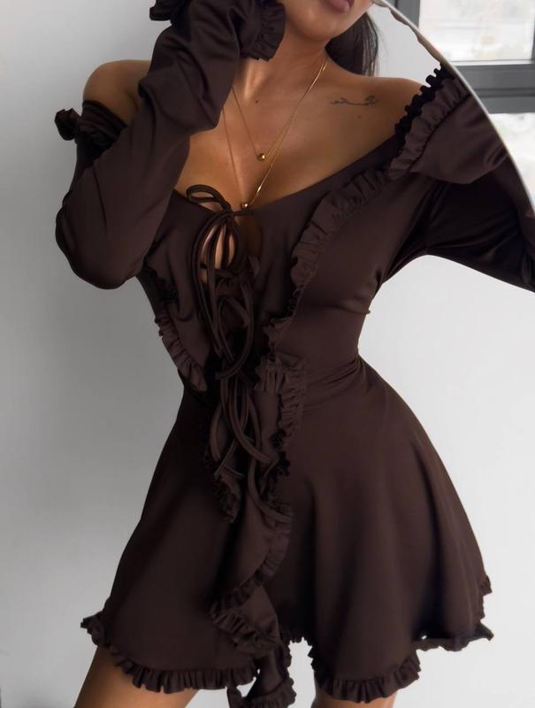 Неймовірно гарна сукня з рюшами , яка попаде в саме серденько 🫶🏻 Сукня Мод: 373 Розмір: 42-44,46-48 Тканина: мікродайвінг Кольори: чорний, шоколад