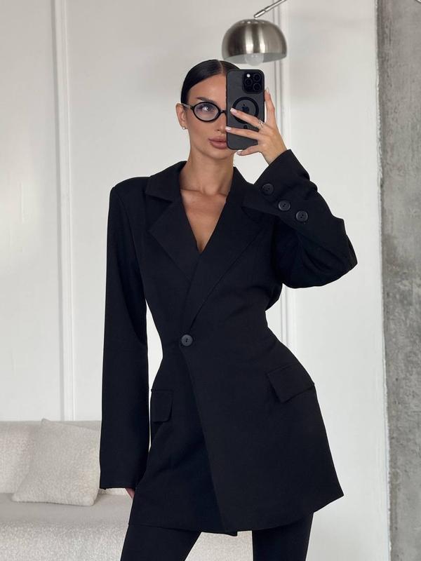 🤍Проста та елегантна сукня-піджак, який підкреслить фігуру та зробить вас неперевершеною✌🏻 ▫️Тканина: костюмна тканина + підкладка ▫️Розмір: SM / ML ▫️Колір: чорний , сірий ▪️Мод.: 025