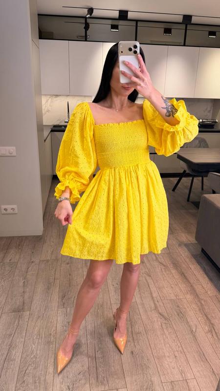 👗 Женское платье из прошвы 💸 Цена: 1450грн Арт701 LilB 📌 Характеристики: • Ткань: прошва с подкладкой - не просвечивается, комфортна к телу • Размер: универсальный 42–48 • Цвета: черный, желтый, белый, зеленый, малина ✨ Особенности: • Верх выполнен на эластичной машинной резинке - идеально держит грудь • Юбка с подкладкой - для дополнительного комфорта • Свободный крой - подходит разным типам фигуры • Качественный пошив - сохранение формы и аккуратный вид
