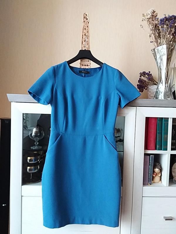 Класична блакитна сукня, що підкреслює фігуру. Розмір вказано XS. Стан відмінний.Довжина 86см= 36верх+50низ,довж.рукава від плеч шва 14,5см, ПОГ 42-43см,ПОТ 36см,ПОБ 45см