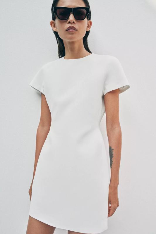 ZARA WOMAN COLLECTION Короткое платье с круглым воротником и короткими рукавами. С подкладкой в тон, прямым низом и скрытой молнией сзади.