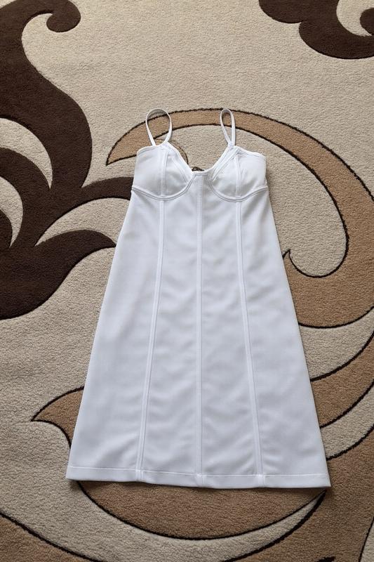 Біла літня міні сукня. На етикетці вказано L. Але на справді йде на S-M. Стан новий. Довжина 69см.