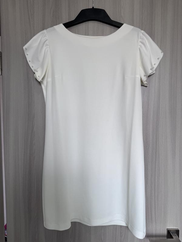 Сукня молочного кольору із перлинками на рукавах, розмір M
