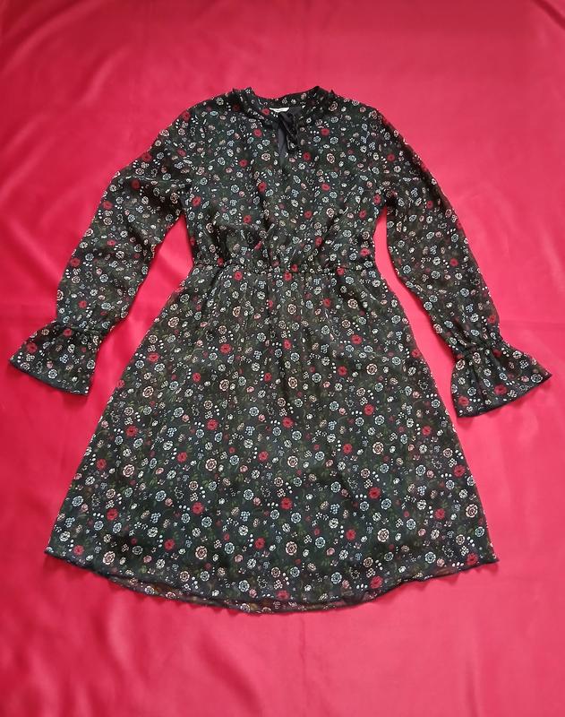 Легкое летнее платье с цветочным принтом на подкладке (кроме рукавов) в хорошем состоянии. В талии легкая резинка. Размер производителя XS, но лучше всего подойдет на S-M.