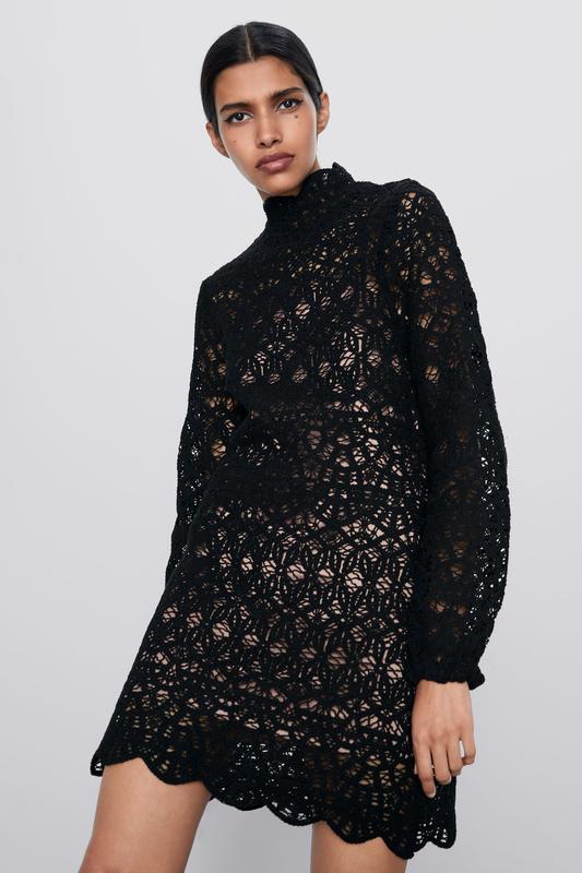 Платье Zara РАЗМЕР S Верх -сетка плетеная Подкладка - платье майка Длина 84 см Плечи 34 см, Рукав 66 см Ширина под рукавами 40 см ПОТ 40 см ПОБ 45 см