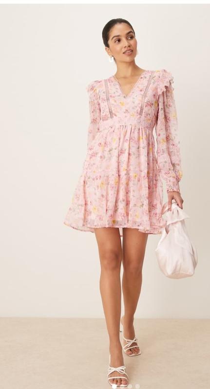 нежное розовое платье с обьемными рукавами змеечка сбоку очень приятное к телу хорошо сидит и держит форму длина 90 Плечи 40 Рукав 65 Грудь 46 Талия 42