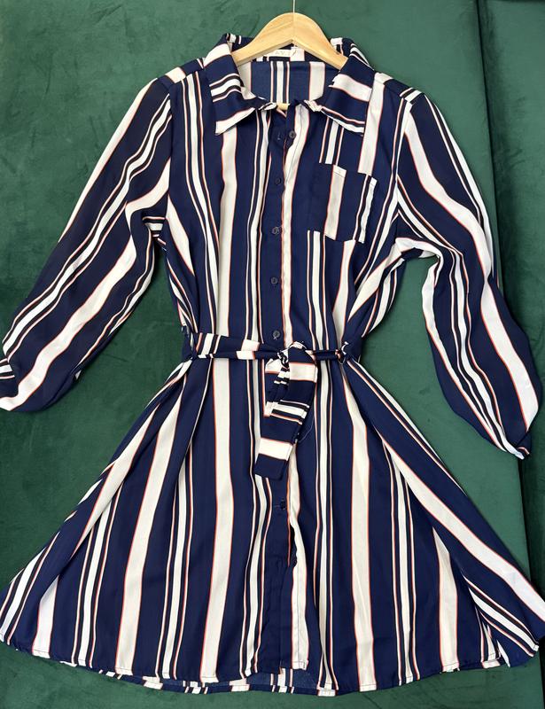 Легка сукня- сорочка з поясом в полоску На розмір S,M