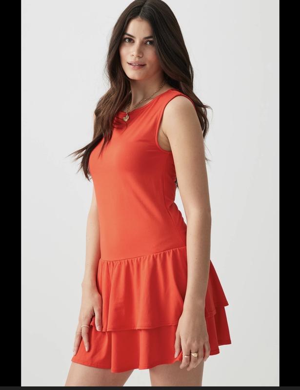 Стильна та ніжна сукня від Topshop у яскравому кораловому кольорі. Ідеальний варіант на літо або теплу весну. Модель без рукавів, з акуратним круглим вирізом і легкою спідницею з воланом, яка красиво лягає по фігурі та додає образу легкості й жіночності. Тканина приємна до тіла, добре тримає форму та виглядає дуже ефектно. Підійде як для повсякденних прогулянок, так і для побачення, відпочинку чи подорожей. 📏 Заміри: • ПОГ — 42 см • Довжина — 82 см Сукня виглядає яскраво та свіжо, гарно поєднується з кедами, сандалями або босоніжками. Стан гарний. 💕