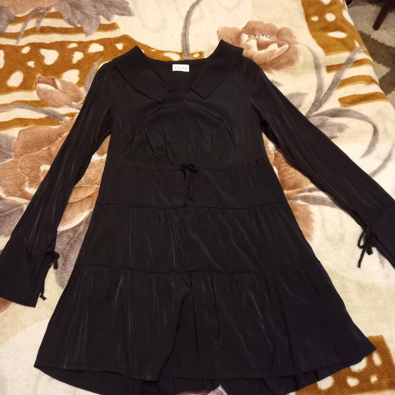 Черное короткое платье.Стан идеальное, одевала 2 раза, эффектов нет. пог-47см пот-46см общая длина 83 см длина рукава 67см материал: хлопковая,вискоза,полиэстер.