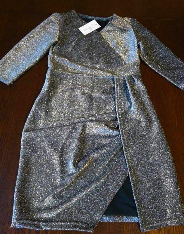 Очень красивое женское платье изготовлено из блестящего трикотажа "люрекс". Мягкое поблескивание ткани создает праздничный образ. Отрезная талия и драпировка в области живота зрительно стройнят и вытягивают фигурку. Размер 44-46 Замери надам Новое с биркой