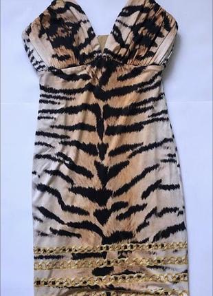 Сукня в тигровий принт, розмір s-m, щільна чашка, можна носити без бюстгальтера, добре тягнеться, якість відмінна {Туреччина}, стан ідеальний