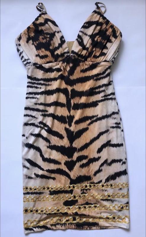 Платье в тигровый принт, размер s-m, плотная чашка, можно носить без бюстгальтера, хорошо тянется, качество отличное {Турция}, состояние идеальное