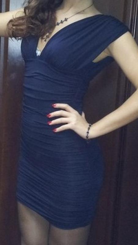 Красивое, стрейчевое платье-мини. Идеально сидит на фигуре, стильный фасон, хорошо тянется. Глубокий темно синий цвет.