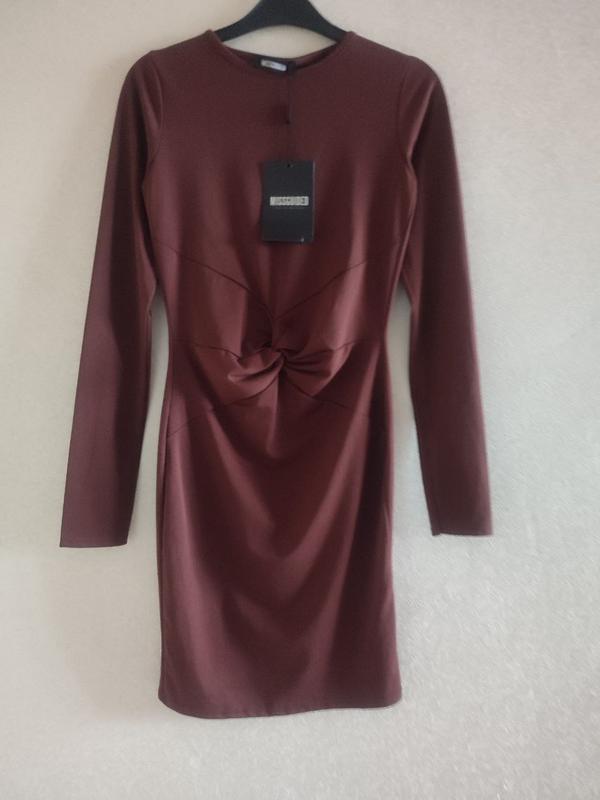 бумажная бирка размер 8 пог 38-46 пот 32-38 поб 38-48 длина 85 рукав 62 поліестер, еластан шоколадного цвета