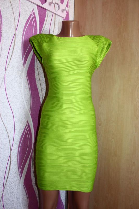 Платье по типу футляр / идет в облипку / зелено-салатовое / текстурный материал волной