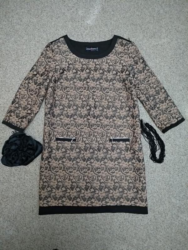 Платье в коричневых тонах Фактура под гипюр Имеет кармашки на замочке Также сбоку приятный замок Длина 85 ОГ 50 Длина рукава 47 В плечах 40