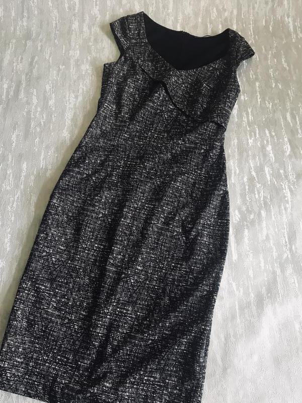 Платье / футляр на подкладке, сзади змейка Espírit . Чёрное с белым . Размер указан М. Длина изделия 99 см, ПОГ 48 см, ПОТ 38 см, ПОБ 48 см , тянется. Состояние нового, без дефектов