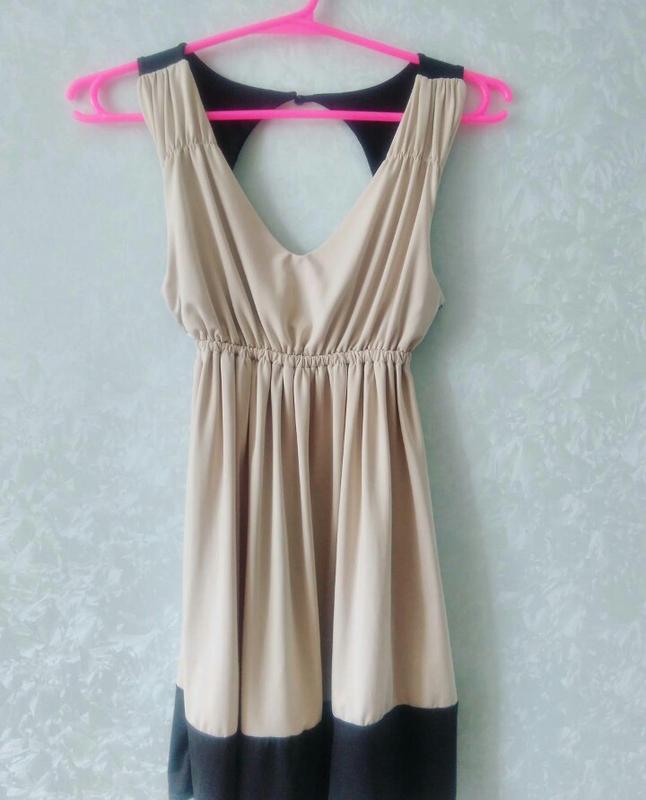 Красивое платье, легкое, невесомое, с черными вставками, и вырезом на спине