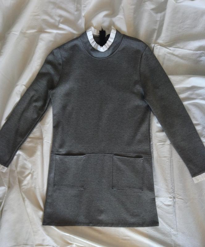 Милое серое платешко💗 прямого кроя, отрезное по линии бёдер, воротник стойка. Плотная ткань, трикотаж, немного тянется. Длинна-80см Обьем груди-44см Длинна рукова-60см