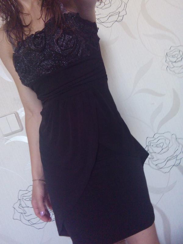 Платье оделось 1 раз на корпоратив. Длинна 61 см. Красивая оборка в виде цветов из тонкого блестящего шифона увеличивает визуально зону декольте ;). Оборочки внизу скрывают животик. Платье без бретелек. Размер S. Пишите, всегда онлайн! А также смотрите другие мои вещи