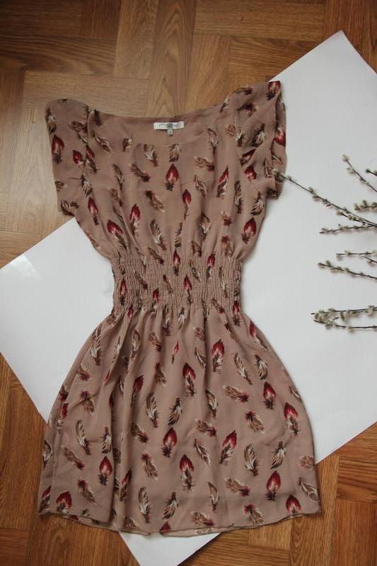 Нежное шифоновое платье,есть несколько мелких дырочек возле полов,не заметных при носке - на последнем фото. Так как пояс широкий, даю две длинны длинна 77см