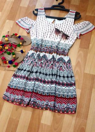 Красива сукня в принт з оголеними плічками, розмір Л, М можна як оверсайз (фасон дозволяє). Півобхват грудей 49 см, півобхват талії 44 см - має сідати вільно, тканина не тягнеться,вільні стегна, довжина 86 див. Виробництво Індонезії.