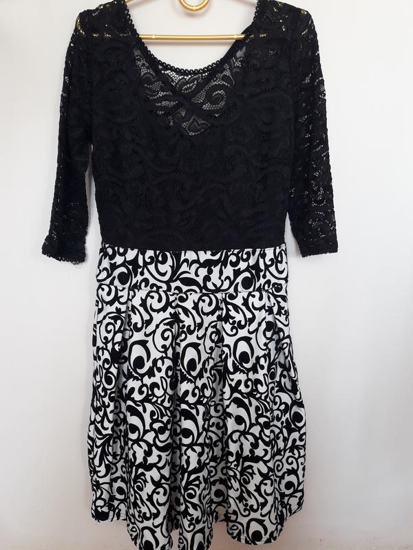 Гарненьке плаття на низеньку дівчину, верх ажурний, спинка трохи привідкрита, заді на замочку, розмір С, чвертковий рукав, довжина від плеча до низу 80 см