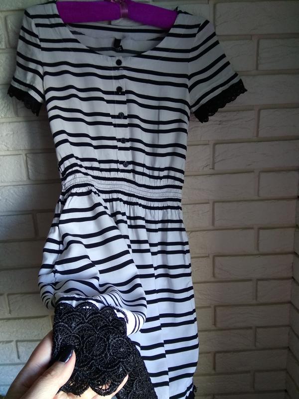 Лёгкое летнее платье в полосочку, пояс на резинке, есть кармашки, состояние отличное, но есть небольшое пятнышко ( последнее фото, выводить не пробовала), замеры: пог 38 см, поб 54 см, длина 83 см