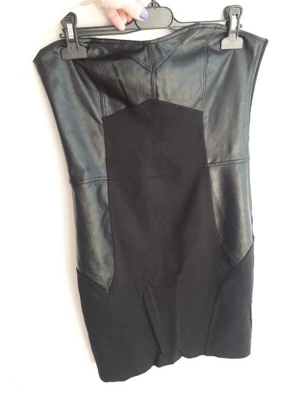 кожзам і плотна тканина(я в тканинах нерозумію) тянуться, дуже класно лягає по фігурі(все лишнє скриває, якщо потрібно) Довжина 70. Ширина бедра 43. Талія 36.